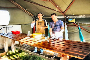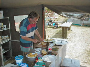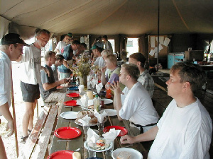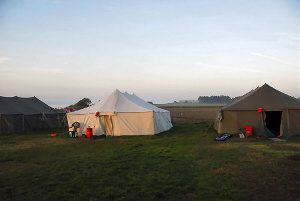 Lejren består af en række store gamle militærtelte (hvis du har set TV-serien MASH ved du hvad vi mener).